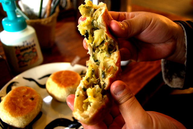 湯気がふわぁ~っと立ち上る。早速一番美味しいところをかぶりつく。んまい!予想以上に美味い!中はキャベツ・にんじん・野沢菜がギッシリ入っている。