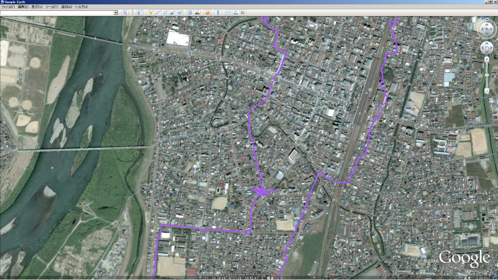 長岡駅東口をパスし、線路沿い東側の道をトレース。ちなみに線路と線路沿いの道の間に、かつて栃尾電鉄の線路があった。今は全く面影はなくなってしまっているが、俺が中学生の頃には使われなくなったプラットホームがそのままに放置されていた。その当時はこれがプラットホームであることに全く気がつかなかったのが今悔やまれる。