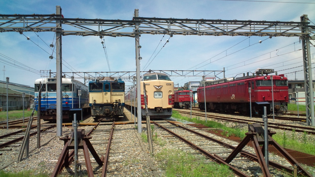 途中の跨線橋から見えた長岡車輌センターで、機関車2輛・485系旧国鉄色1編成・165系1編成が見えたので、ケータイで撮影。そーいえば、最近デジイチ出動していないなぁ。