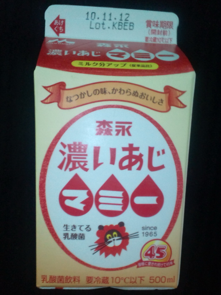 で、飲んでみた。確かにちょっと濃いような気がする。ミルクの風味がちょっと強いかも。濃いあじマミーだと知らされずに飲んでみたら、おそらく解らないだろう。元々ノーマルのマミー自体、結構濃厚だからね。コレについてははると意見が一致。次回以降また購入するかについてはかなり微妙。ノーマルとほとんど変わらないし、値段も若干高いからね。