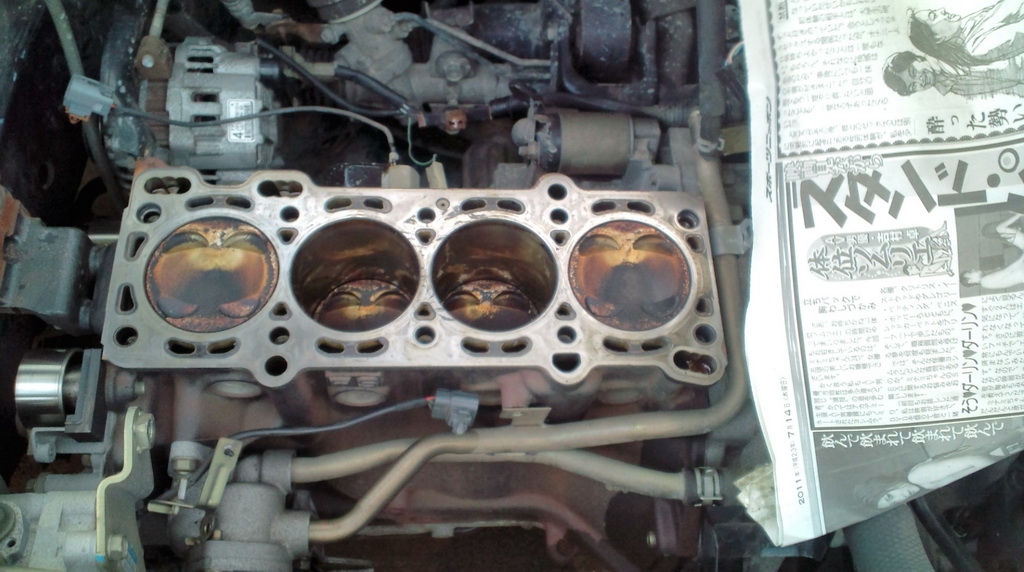 エンジン脇のスポーツ新聞は気にしないでください。お店の人が用意した新聞紙なんです。子供は見ちゃダメですよー。R18指定