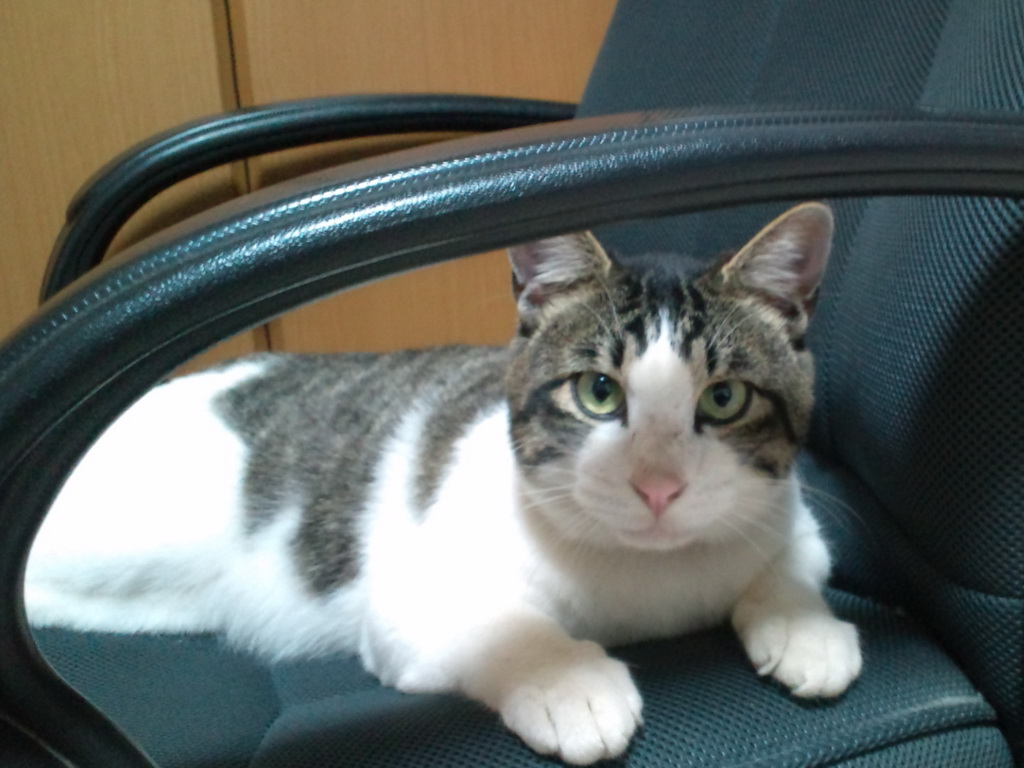去年の夏頃に現れたときはまだ生まれて数ヶ月しか経っていないくらいの大きさだったんですが、今ではすっかり大きくなってしまって、体重は約7キロほどあります。抱き上げるとずっしりとします。飼い主に似てしまったんでしょうかねー?