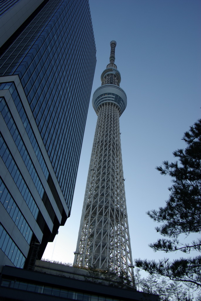 久しぶりに乗った地下鉄。あの独特の臭いが妙に懐かしい。馬喰横山から東日本橋まで120m程徒歩で移動し、東日本橋から京成電鉄車両の青砥行きに乗車。都営浅草線の終点押上で下車。B3出口から地上に出ると、目の前にじゃなくて体を反らして上空を見上げると、天空にそびえ立つスカイツリーが見えた。
