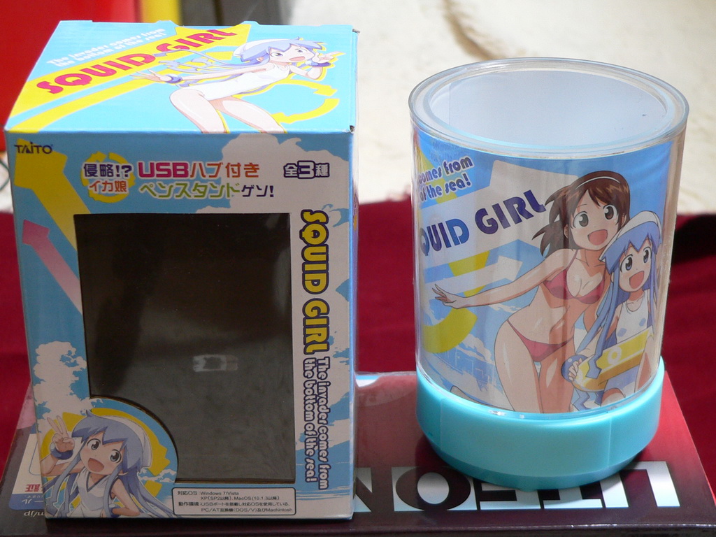 でドンキで買い物をした後SEGAのゲーセンに立ち寄ってみた。何か触手が伸びそうな景品はないかなぁ~と店内をぶらついたら、またもやイカ娘グッズを発見。穴の空いたアクリル板に、クレーンからぶら下がっている棒を通り抜けさせて、景品を留めてあるロックを解除するというプライズゲーム。サービス台ということで、簡単に景品をゲットできるとのことだが、本当に簡単にゲット出来てしまった。