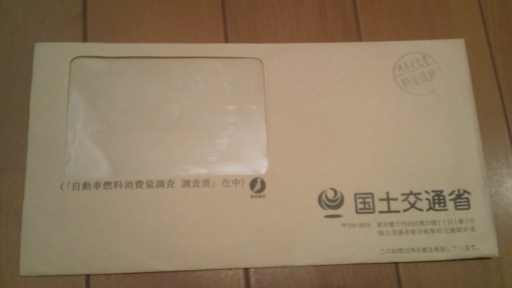 自動車燃料消費量調査ということで、特定期間の給油量と走行距離を調査するという内容です。このような調査は初めての経験で、何故Myプレが調査対象となったのか不思議です。まぁランダムに抽出したのでしょう。全国で何万台もある車のうちの調査対象に選ばれたということは、少なくとも外れる確率より全然低いはずなのに、コレは喜んで良いのやら哀しんで良いのやら・・・。こういうところで抽選に当たる運を使ってしまうのはちょっと残念。宝くじに当選する運として取っておきたかったのにぃ~。