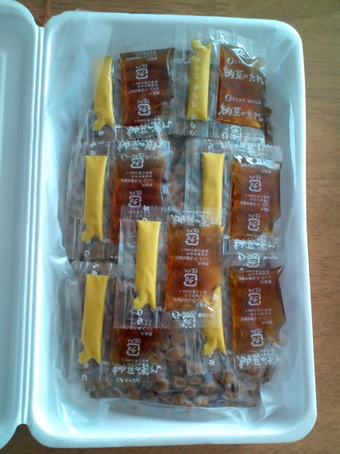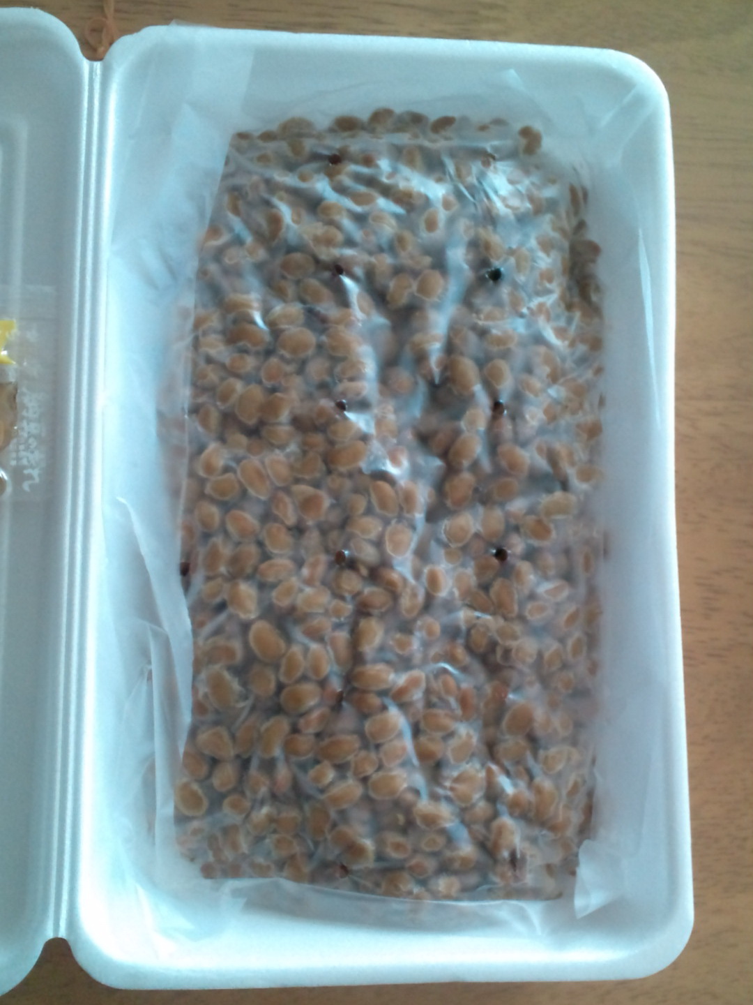 なんともめでたいネーミングだ。しかもサイズがすごい!1パックで330gもある!手に取ってみると、今まで感じた事のない重量感!納豆でこれだけ重いのは初めてだ。ごく普通の3連や4連パックの納豆は、1人前約50g位なんだけど、これは約7人前弱もある。なんかスゲー +(0゚・∀・) + wktk +