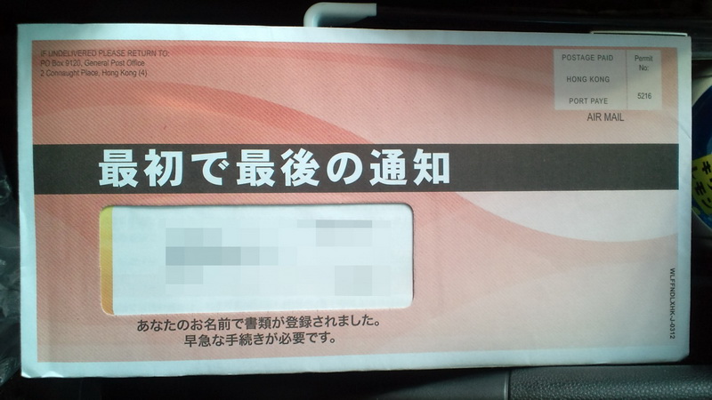 <<<<< ここ >>>>> ダイレクトメール詐欺の注意喚起をしてくれているサイトのようです。そのサイトを読む限りでは、どうやら海外宝くじ当選権利をあーだこーだしてあげるので、金を払ってねという代物である事が分かった。母に届いた郵便物なので中身は見ていない(開封せずに破り捨てたとの事)んだけど、多分同じ内容だろう。