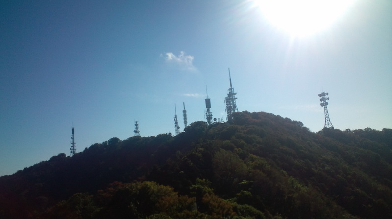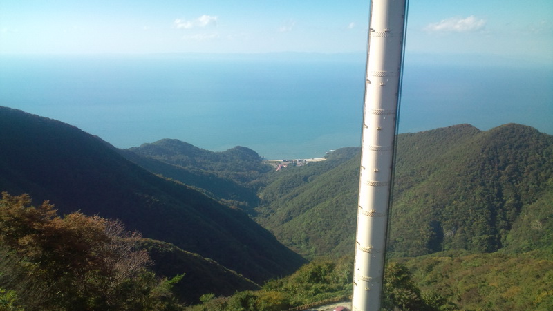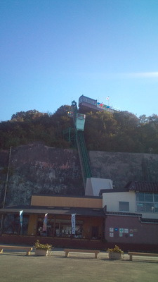 タワーには絶対登りたくないという【はる】たっての希望で、斜行エレベーターで山頂にに上る事にしました。上昇中のエレベーターから見た景色。おお、なかなか見応えのある景色です。