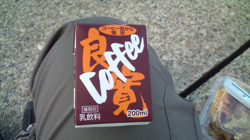 弥彦山を海側に下りて、シーサイドラインを寺泊方面へ。買い物客で賑やかな通りをスルーして出雲崎へ。道の駅でおやつを食べる事にする。出雲崎に来たら良寛コーヒーだね。