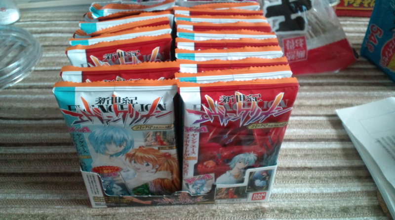 エヴァのトレカ入りチョコウェハーが、半額で売っていました。安かったので全て根こそぎ買ってしまいました。根こそぎと言っても18個しか無いんですけれどね。