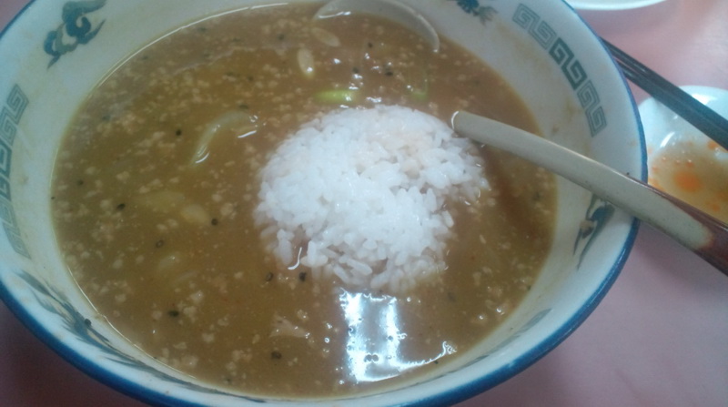 ここも好きなんですよ。いつもは塩ラーメン系+背脂で行くんですが、今日は一度食べてみたかった日替わりメニュー、味噌カレーラーメンを注文しました。