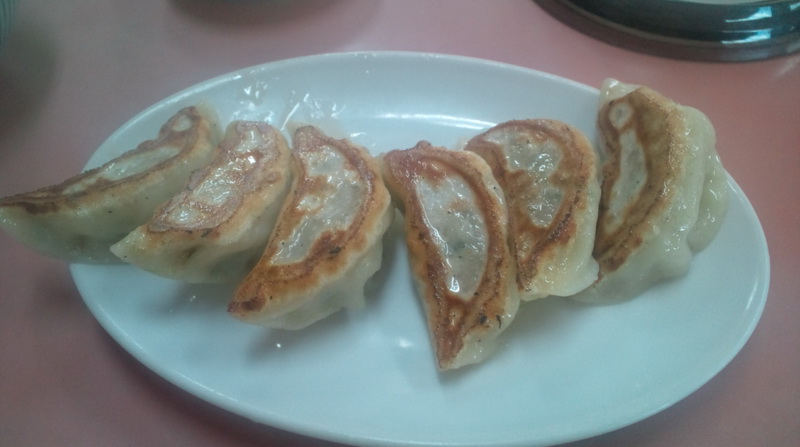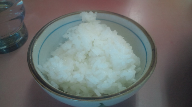カレーのスパイシーさは弱いですが、味噌の旨味は充分感じられました。普通盛りなんですが野菜がドッサリ載っているので、結構満腹度が高いです。それと妻がラーメン屋に来たら必ず注文する餃子、さらに地元見附産こしいぶき無料小ライスを注文しました。