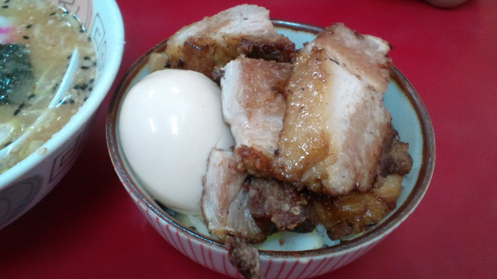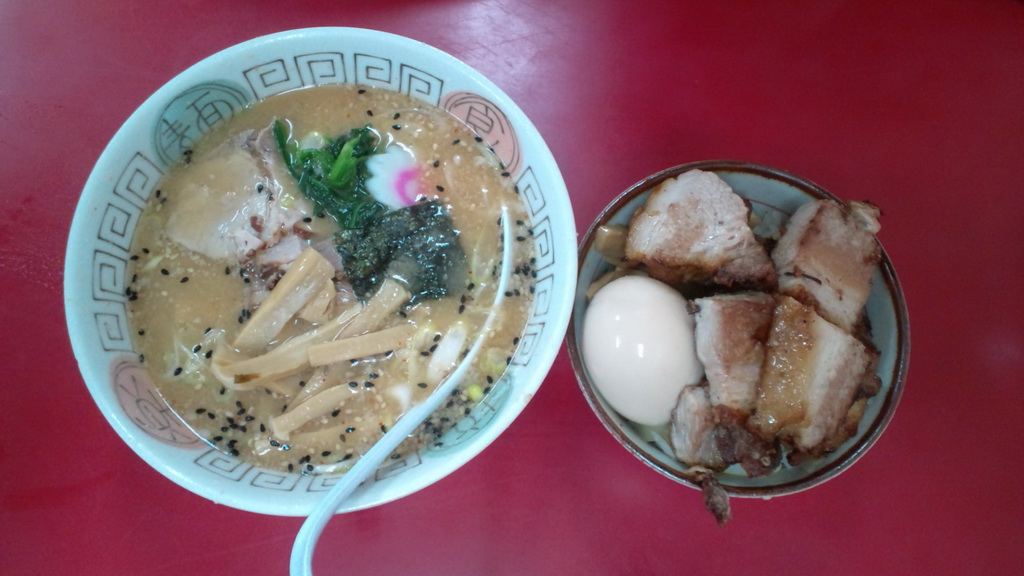 まずはかみさんのミニ味噌ラーメンとミニ炙りチャーシュー玉子丼セットが登場!