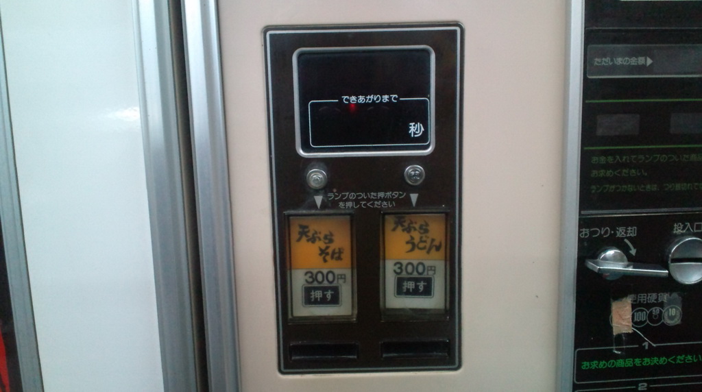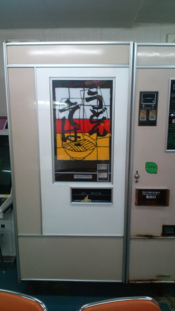 はい、またうどんです。七味はよく見かける小袋に入ったもの。自販機のは仕入れのそばに置いてあります。