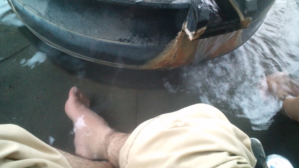 15分くらい湯に浸かっていると、足は全然寒くなくなった。長靴を履いているので、保温効果はバッチリ!足が温かくなると、体全体が暖かくなったような気がする。酷い天候だけど、足湯に来て良かった。