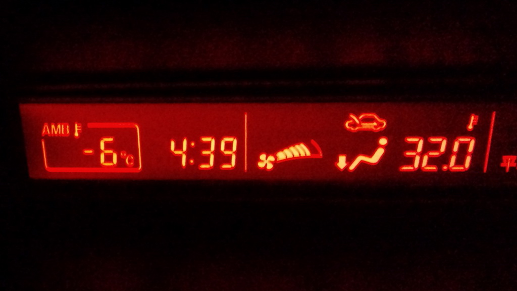 下車して改めて車を眺めると、ボディにビッシリと凍結防止剤の残骸が・・・。洗車しなきゃだけど、水を使う外作業は辛すぎる。