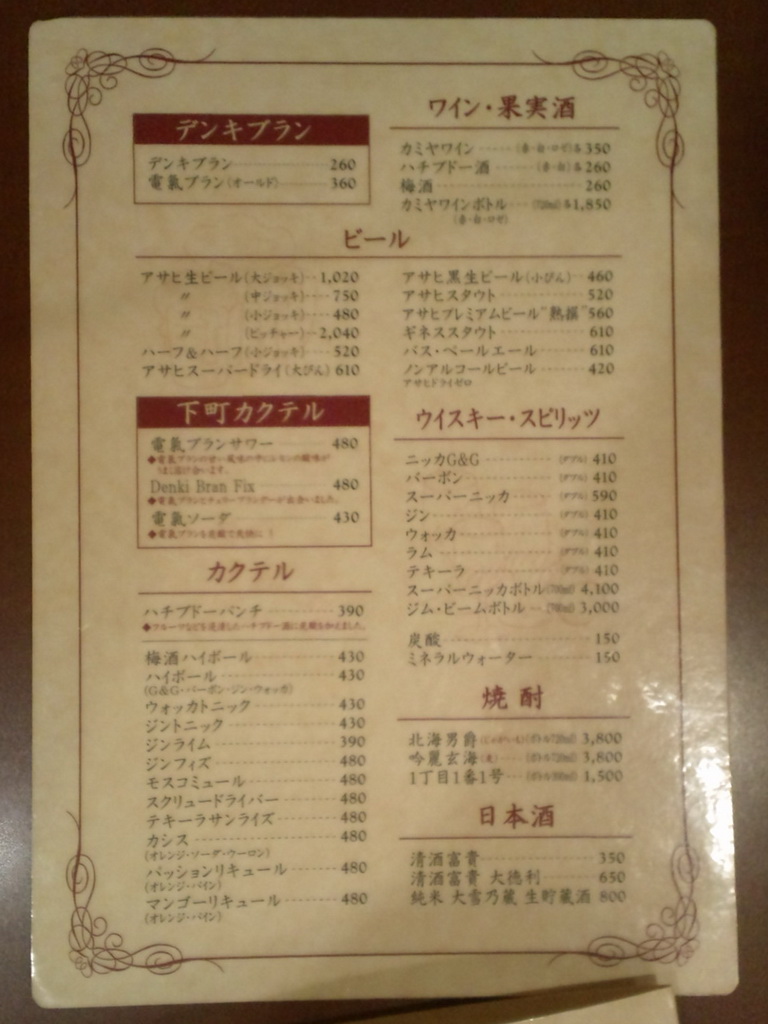 フムフム、なるほど。なにはともあれ、まずはデンキブランを注文。