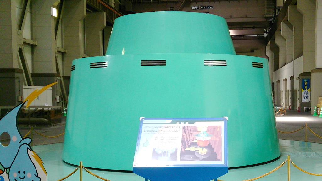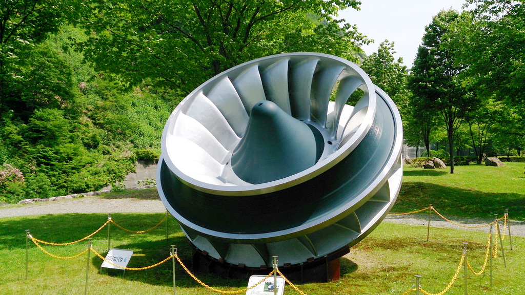 屋外には、奥只見発電所で使われていた実物の水車ランナが展示されていた。