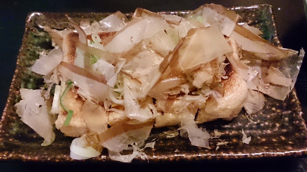 栃尾焼き。栃尾名物のあぶらげを焼いたもの。