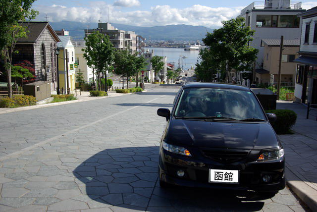 と尋ねられる。もちろん最高に楽しめました。また是非訪れたいと伝える。そして昨日1日駐車場で待機していたプレに荷物を積み込んで出発。支配人は道路に走り出すまで見送りしてくれた。俺たちは本日最後の観光スポットに向かった。と思ったけど、その前にプレで八幡坂を走って見ようと思いついた。