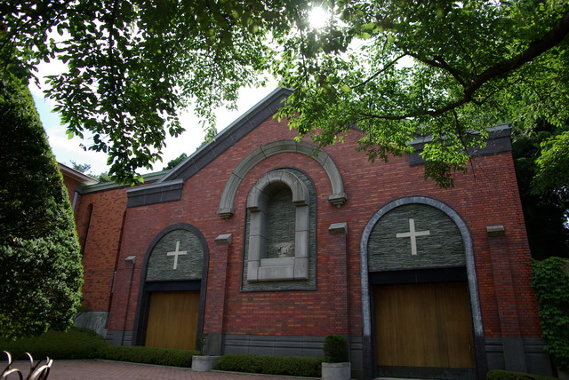 中に入るといきなり賛美歌が聞こえてきた・・・ような気がした。空耳だった。庭の植木はきちんと手入れされていて大天使ミカエルや聖母マリア像が鎮座されていないと、どこかのお屋敷の庭園に思えてしまう。煉瓦造りの建物と庭木がとてもマッチしている。