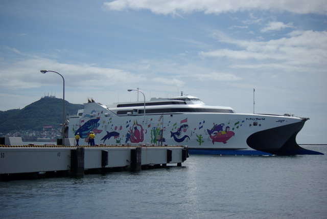 ところでこの船、結構揺れる。船酔いだけはどうしても直せない俺は、結構敏感に気づく。船体が軽量なアルミ合金製あるのと、波が荒い津軽海峡を航行しているせいか、少しだけ気分が悪くなってきた。往路のフェリーも若干船酔いはしたが、この船はあの時よりも船酔い度は高い。普通に立つだけでも、なんかフラフラしたような感覚に襲われる。