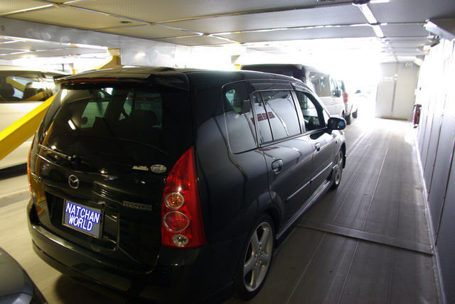 あー楽しかった。妄想モード終了。乗船予定時刻に近づいたのでプレに戻る。しばらくすると前の車が動き出した。すぐさまエンジン始動、数十秒後ナッチャンワールド車両甲板に向かう。