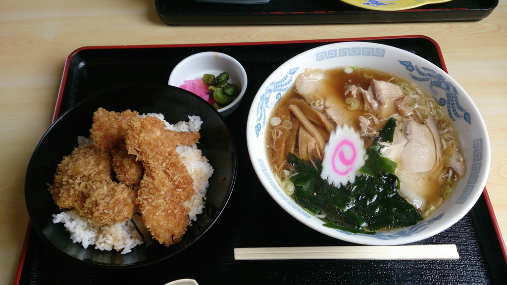 kuromaさんはA定食、私やんばるくいなはタレカツ丼・ラーメンセットを注文。