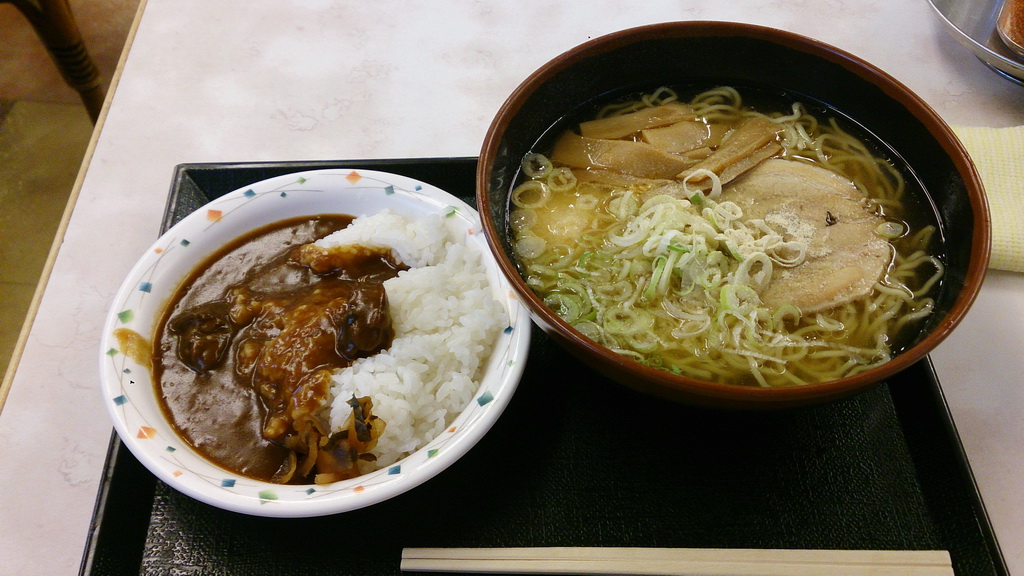 ここのラーメンは、群馬県内に多数店舗を展開するおおぎやのもの。以前食べた時はスープが温くて(゚Д゚)ゴルァ!だったけど、今回はちょっと改善されたようだ。でも麺の量が少ない。それを補うミニカレーなんだろうけどね。フルサイズ同士のセットってないのかなぁ?