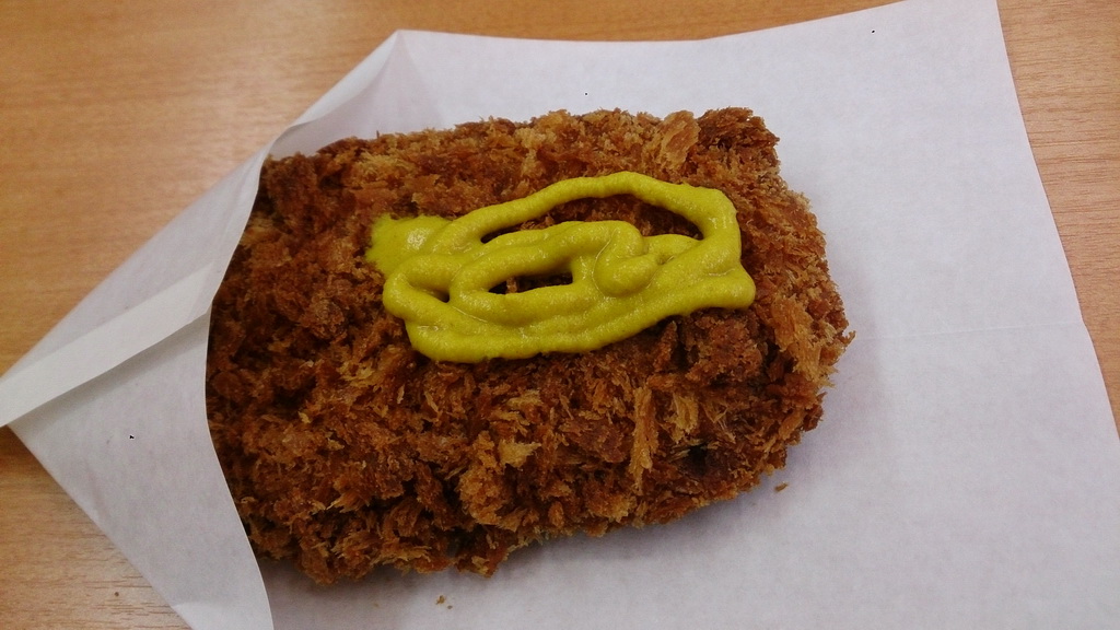 メンチはジューシー。大きいサイズなので、なかなか食べ応えがある。