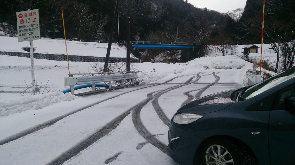 途中、柏崎市内の谷根ダムのCPをゲットしようと走っていたら、突然冬期間通行止めの標識が・・・。