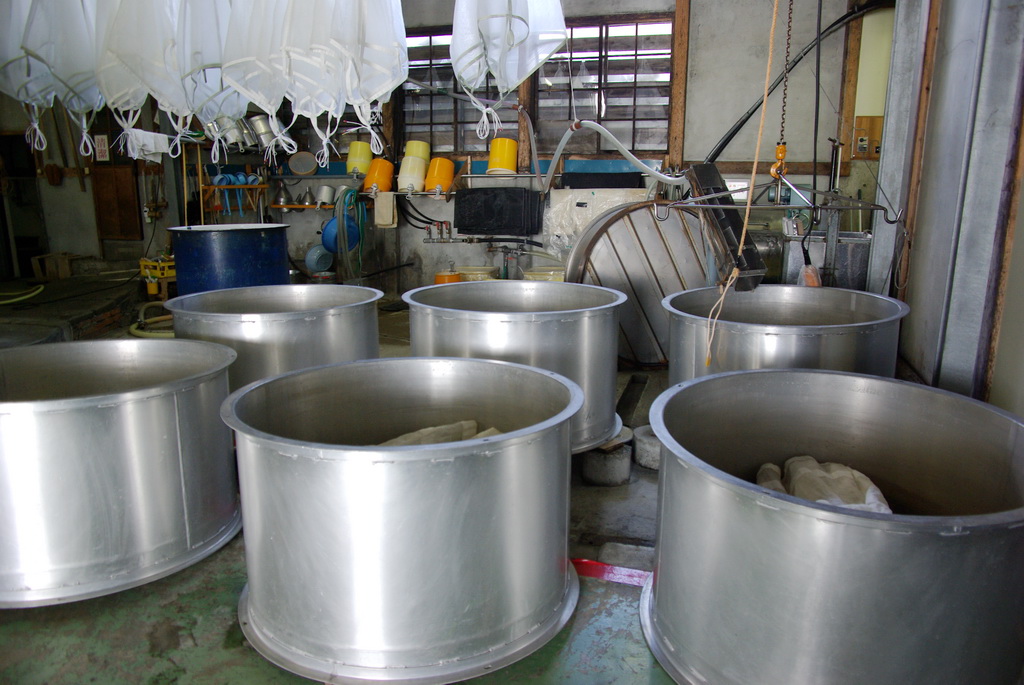 ここの設備は小規模で古い設備だけど、朝日山・久保田の蔵元とか八海山の蔵元は、近代的な設備で見学ルートも充実しているとのこと。