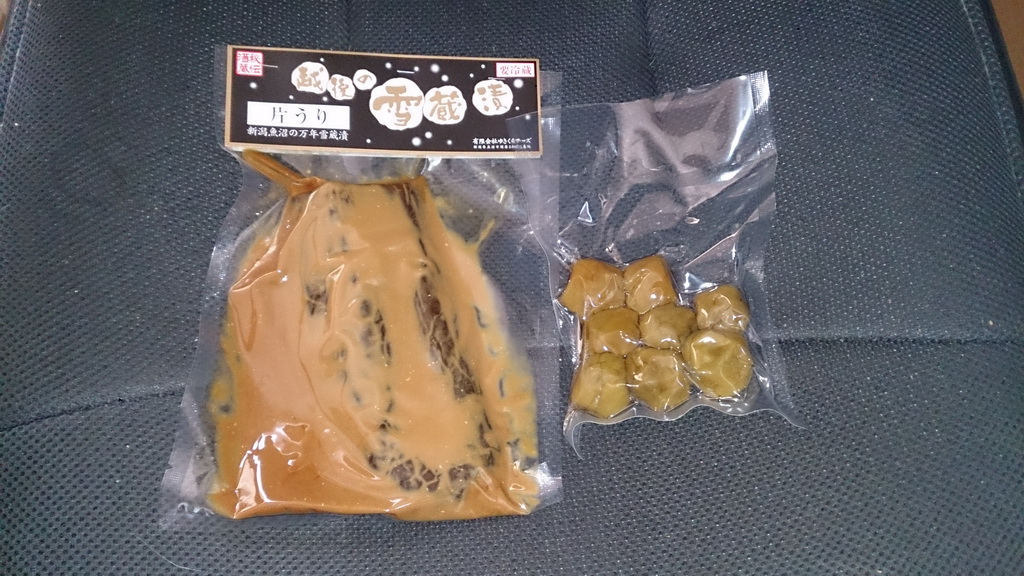 瓜の粕漬けと、梅酒として仕込んだ後の梅の実(粗品)
