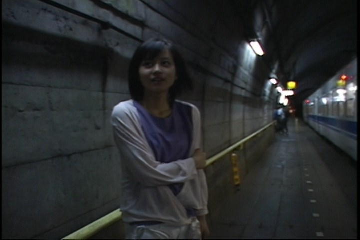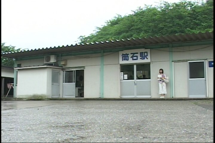 真希ちゃん、筒石駅の軒先で黄昏れる。