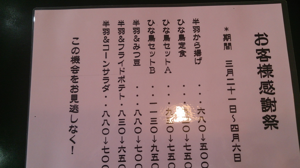 お客様感謝祭で、各種メニューがサービスプライスになっている!!