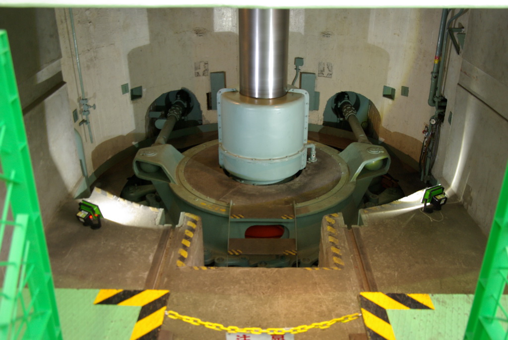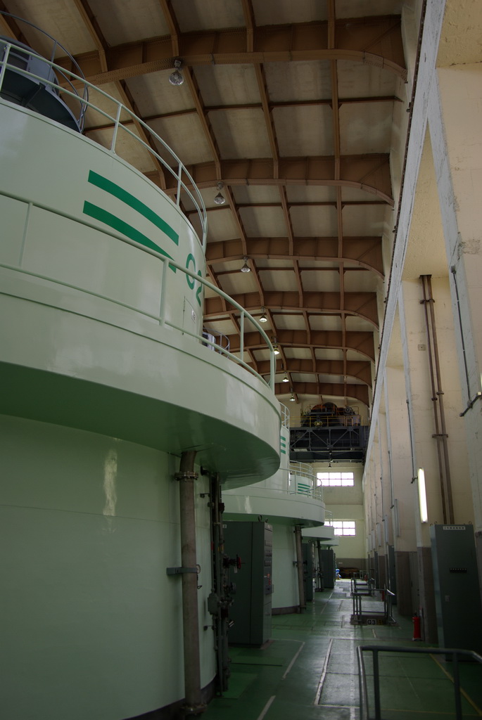 奥を見ると、全部で5基の水車と発電機があるようだ