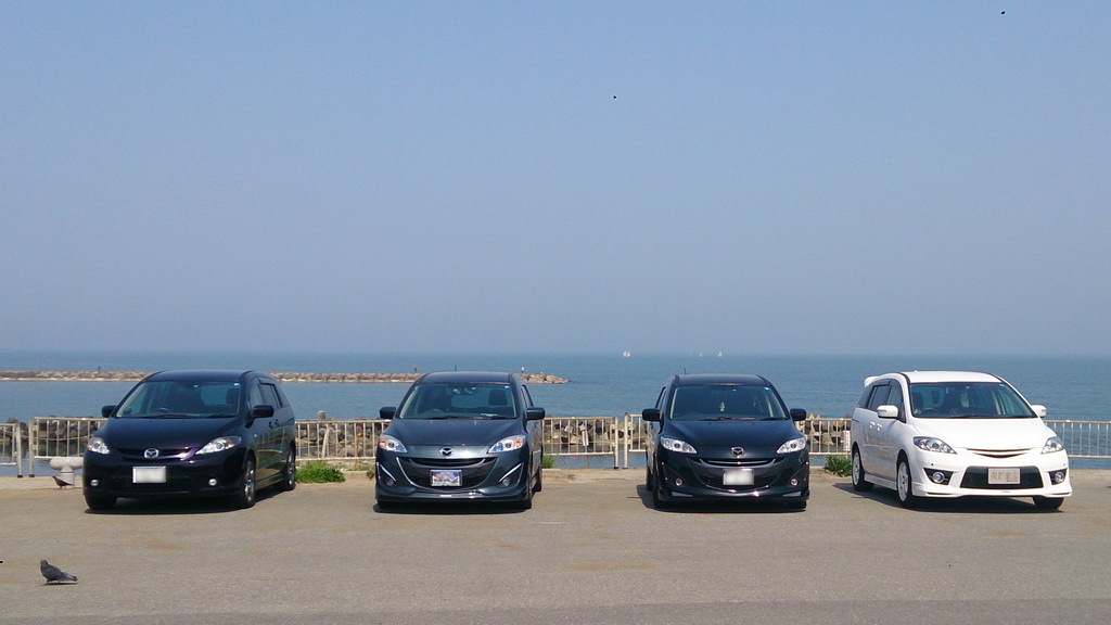 みんなが集合する前、駐車場に窓全開で駐めて車内でマッタリしていたら、