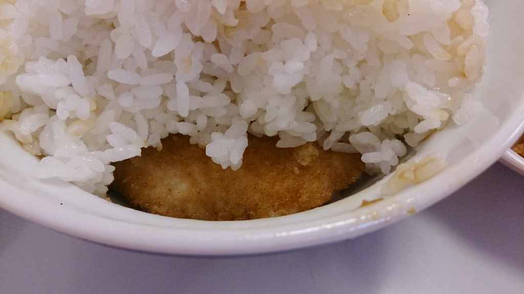 ご飯の中に埋めてあるのだ!そのカツはご飯の熱でアツアツに温められていて、衣も更に柔らかい!