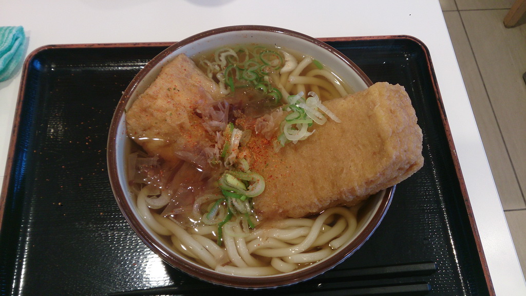 新潟名物の栃尾のあぶらげが、ドカーンと1本分うどんの上に載っているというか、