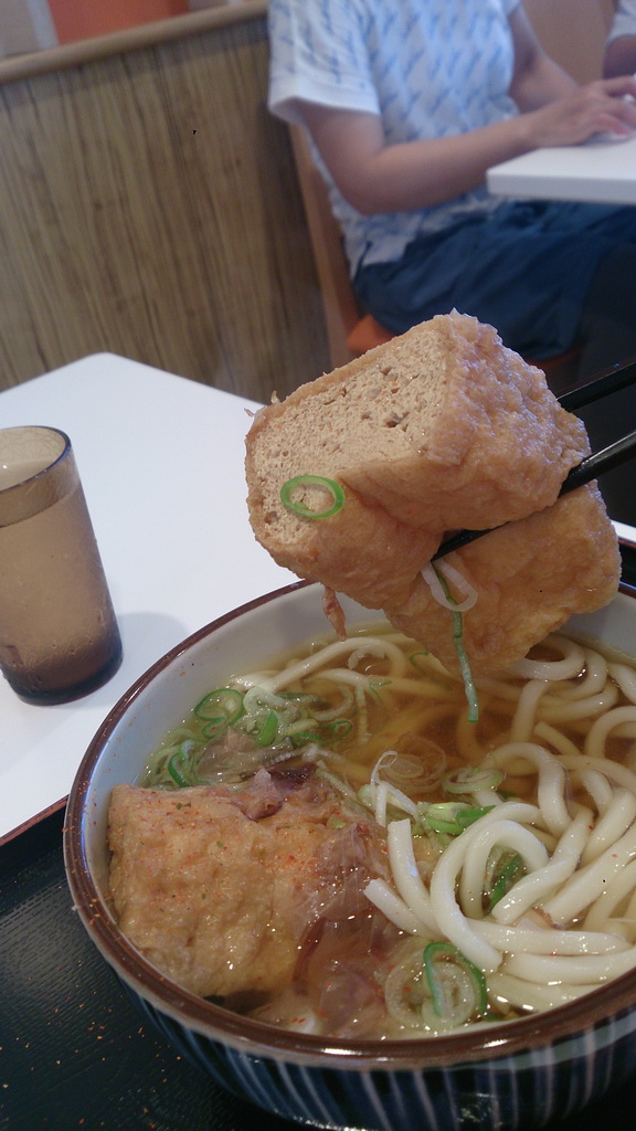 で、食べてみると熱々の出汁つゆをたっぷり吸っていて、んまい!