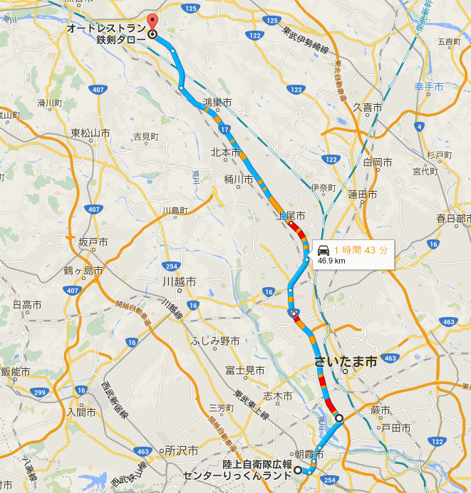 義理の兄弟を和光市駅まで送って、次の迎撃ポイントである行田市の鉄剣タローに向かって出発!
