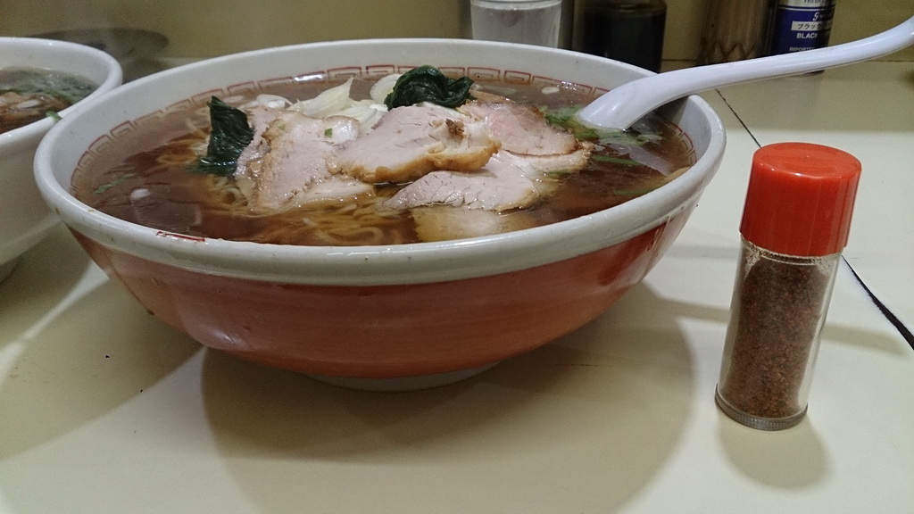 写真じゃイマイチ迫力は伝わらないけど、丼の高さは唐辛子の瓶の高さとほぼ同じ。