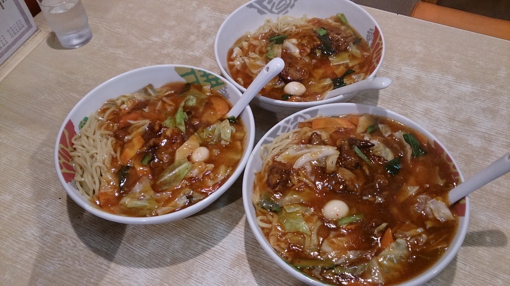 3人で、ここら辺のご当地グルメ、スタミナ冷しを食うのだ。