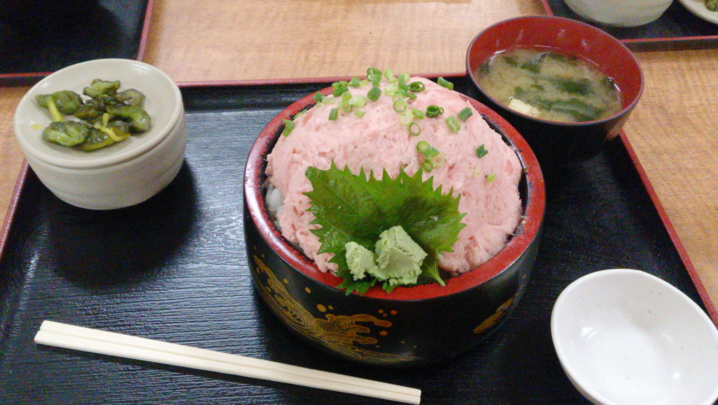 山盛りのご飯の上に、ネギトロが覆い被さるという破壊力満点のメニュー。
