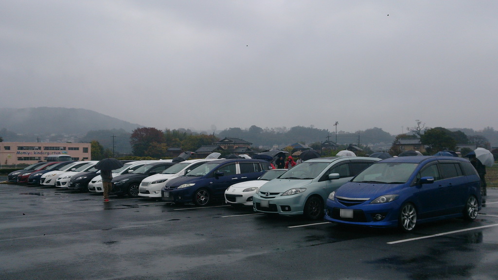 良かったぁ~♪満腹で駐車場に戻り、幹事のきゃすたんさんが開会の挨拶。