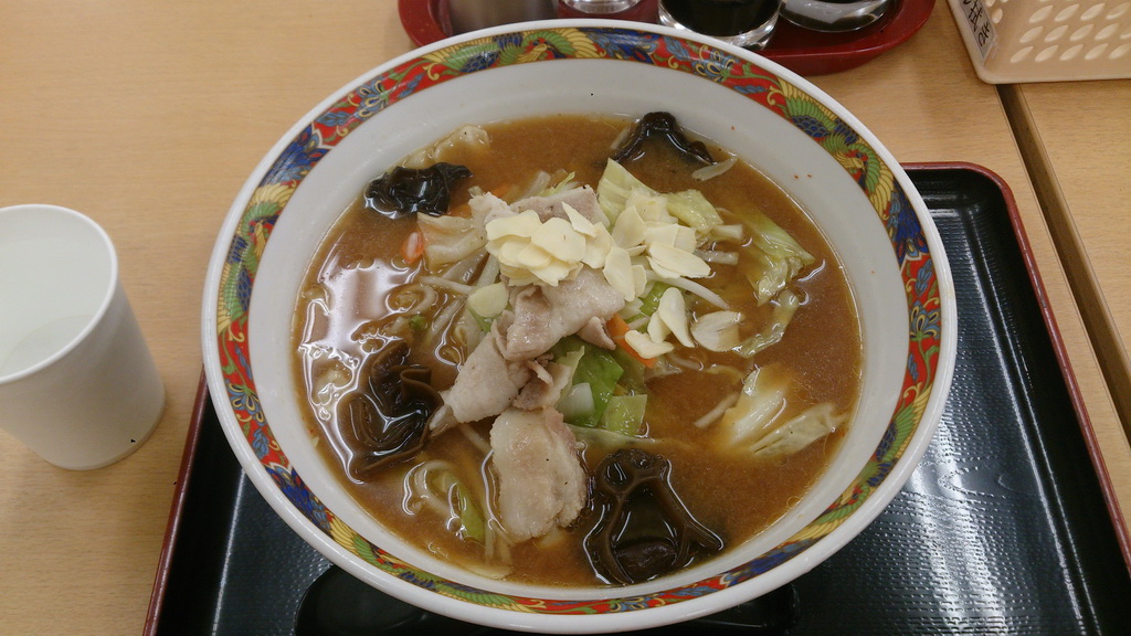 肉野菜炒めを味噌ラーメンの上にドバーッと。