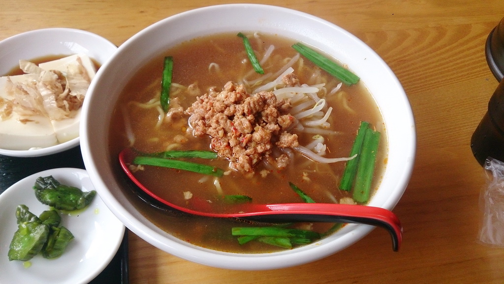 ああ、トッピングされている炒めた挽肉をスープに混ぜなきゃダメなのかな?
