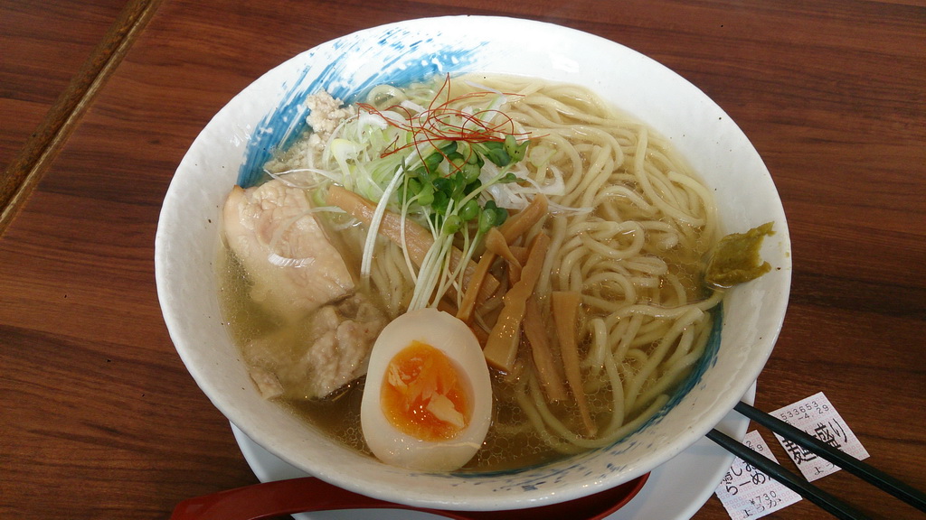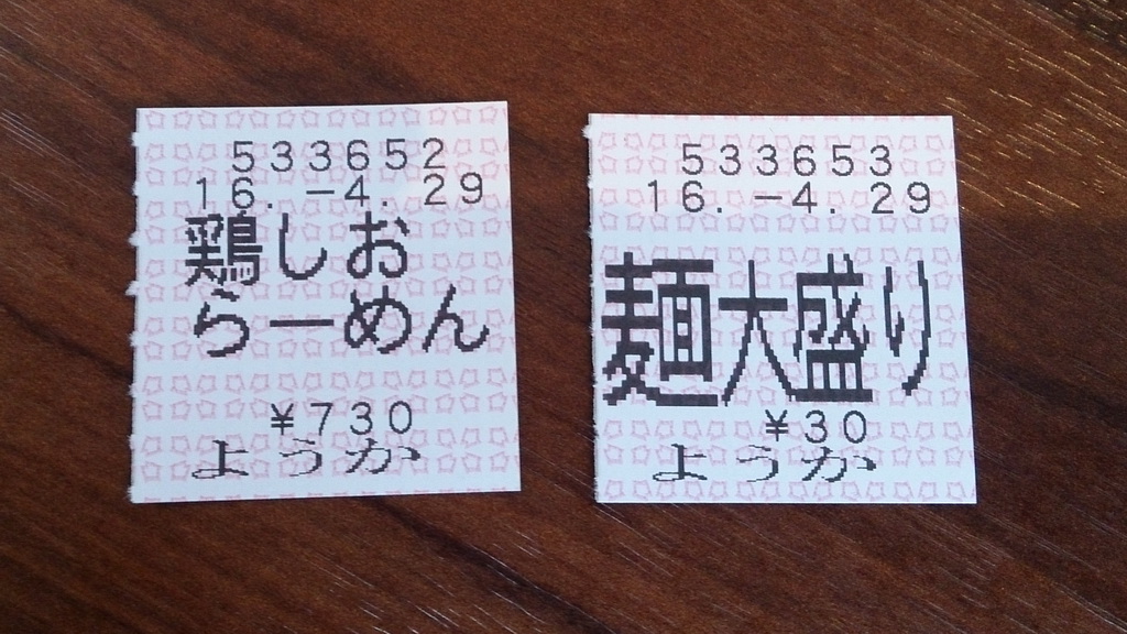 鶏しおらーめんだというので、併せて麺大盛り(太麺)にしてみる。