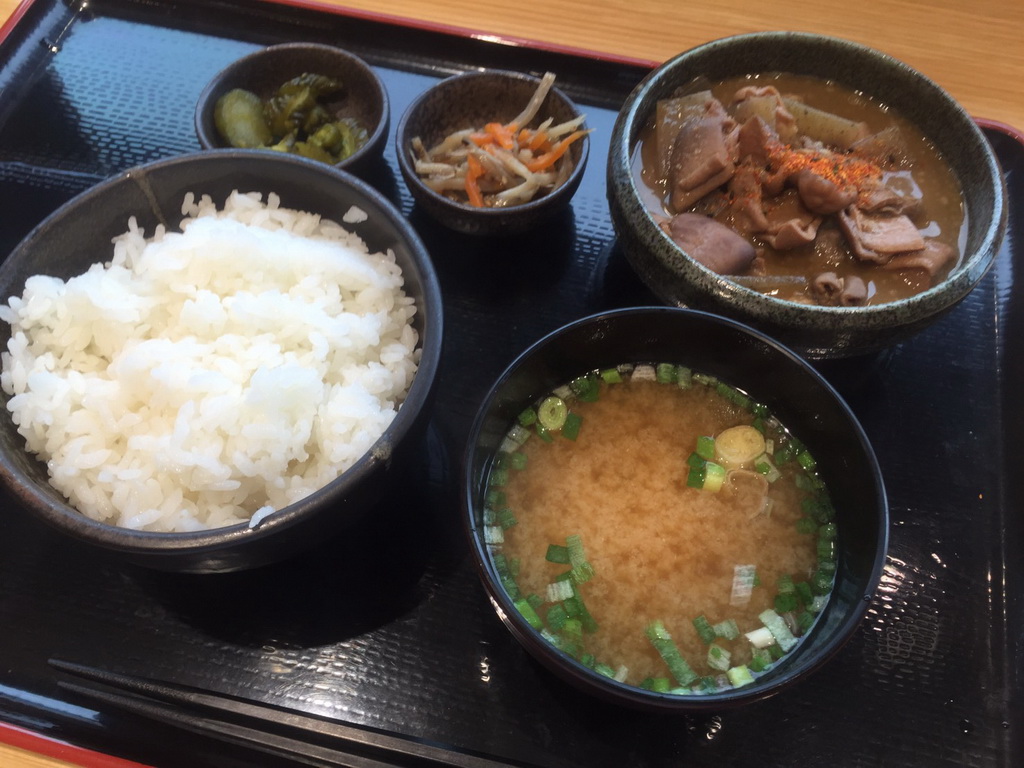 一方その頃、同じく待ち合わせの約束をしている黒梅里(旧きゃすたん)さん(以降 きゃすたんさん)は、谷川岳PAでやんばるオヌヌメのモツ煮定食を堪能中との事。