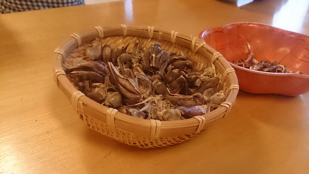 テーブルの上に置いてある【アサツキ】の皮をむきながらそばを待つ。